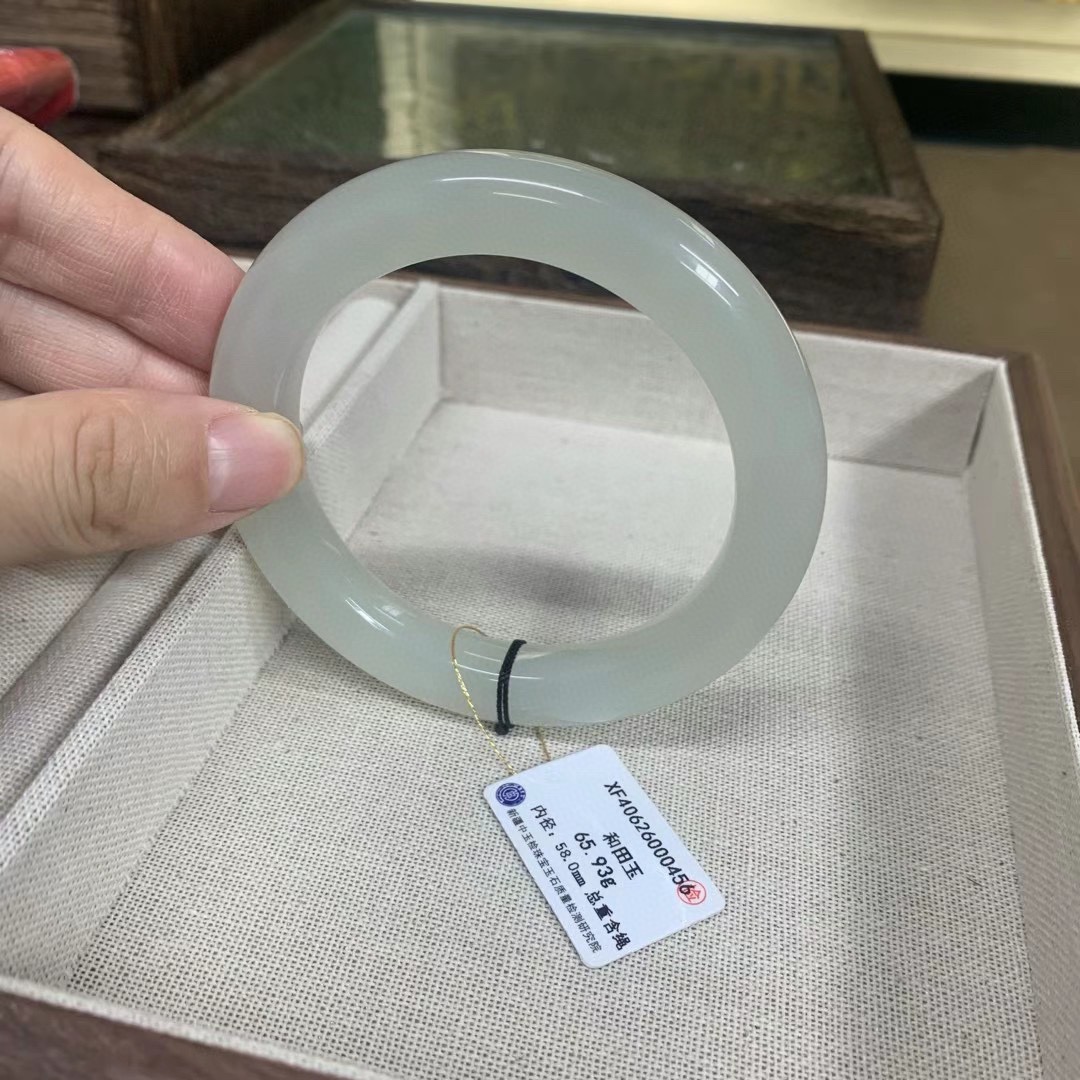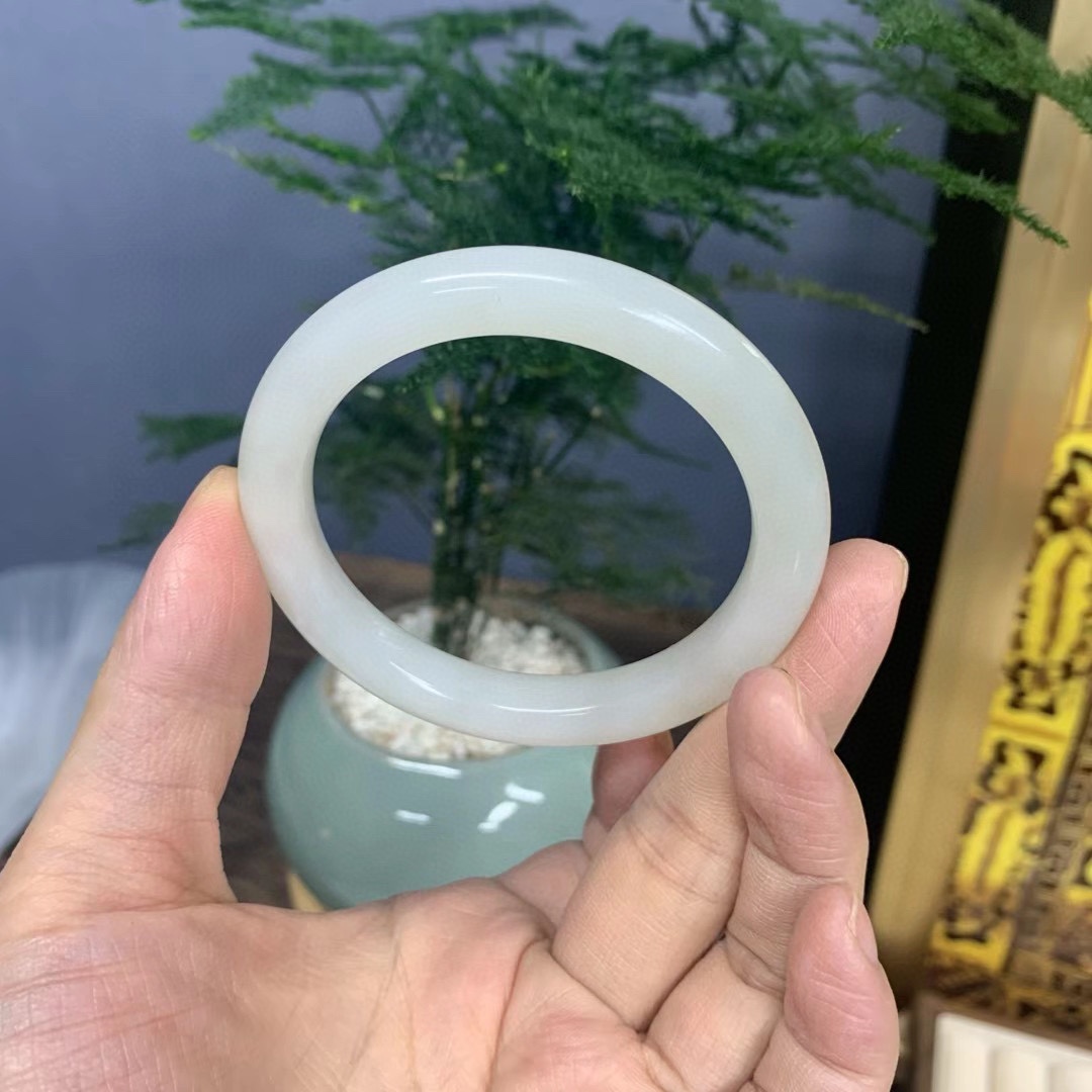謹瑜堂の美しい新疆と田玉高氷白ブレスレットの氷底の油は十分に割れていません。