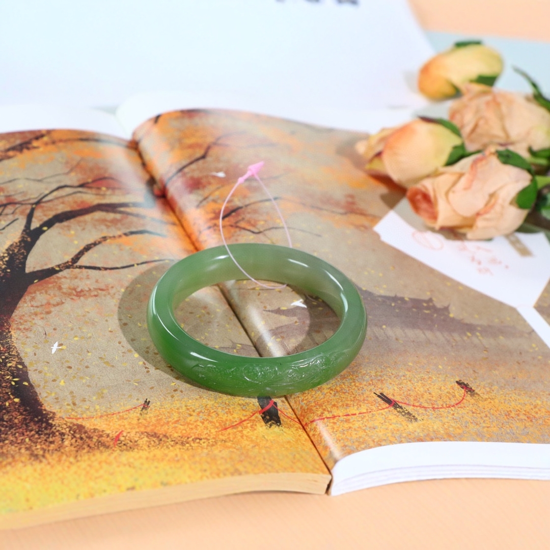 謹瑜堂の美しい新疆と田玉湖水緑ブレスレットの氷底の油は十分に割れていません。