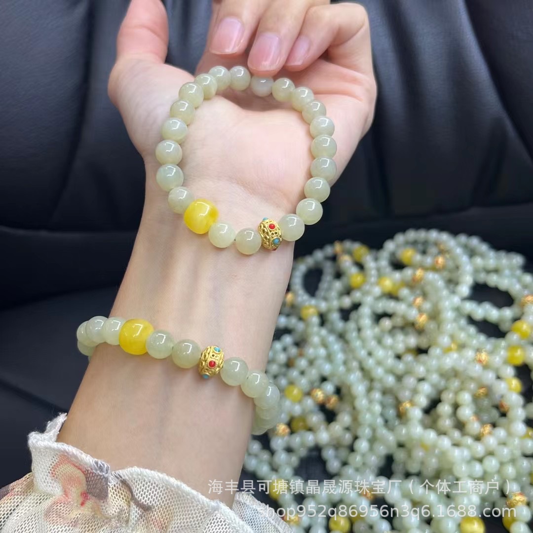 天然和田玉手串と蜜ろう晴水女手串玉ブレスレット散珠和田玉ブレスレット直播バッチ