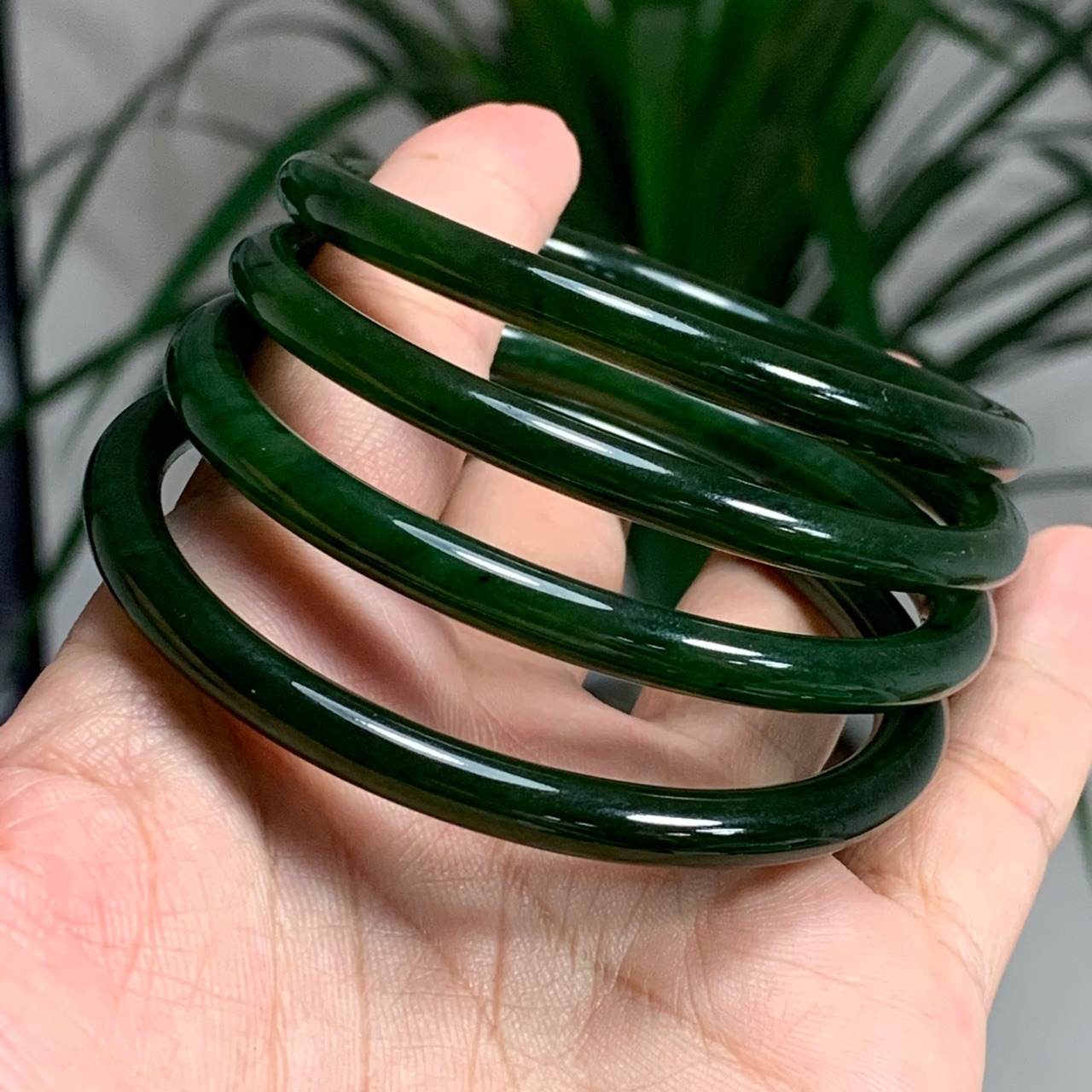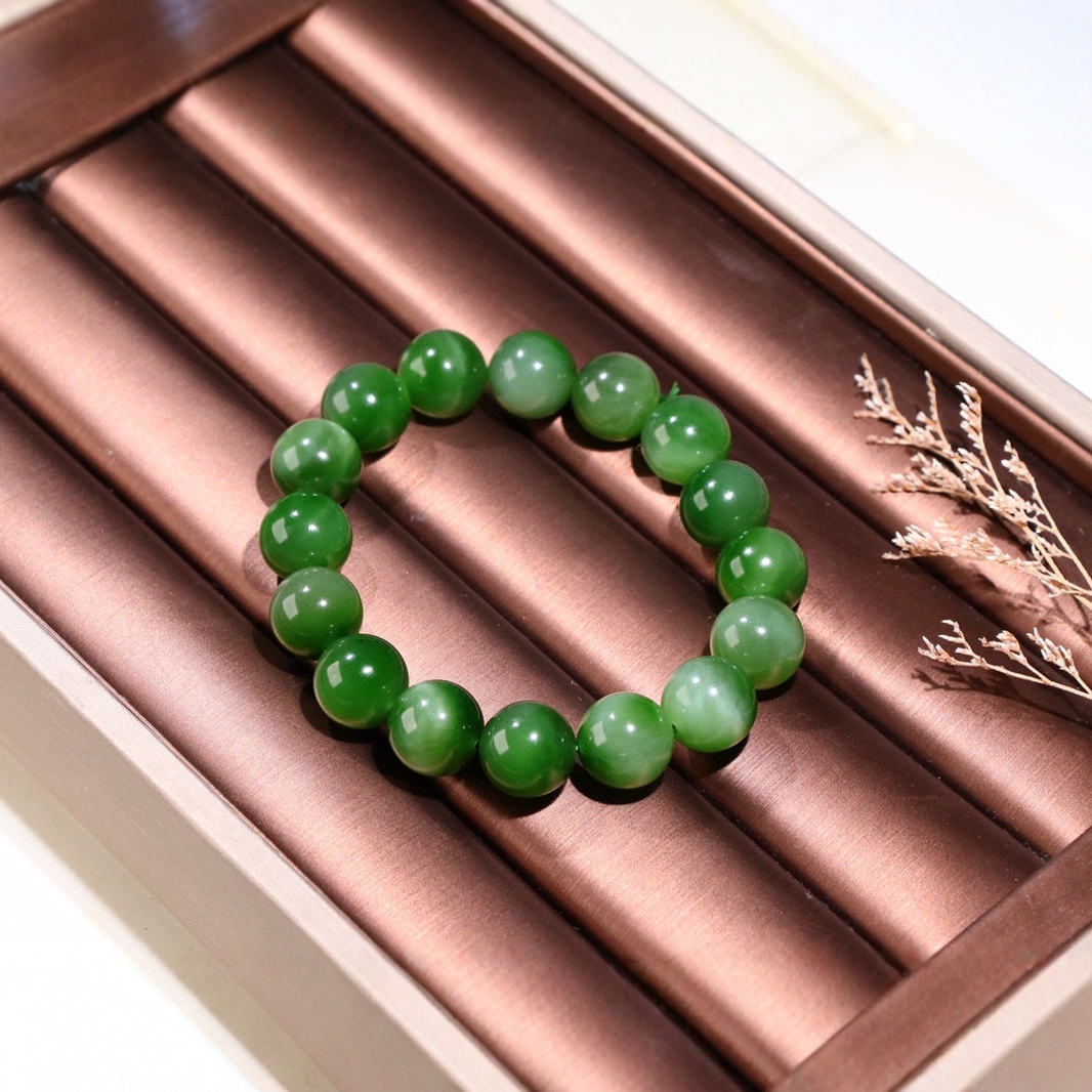 謹瑜堂の新型が来ました。和田玉碧玉6mブレスレットの辛い緑の辛い緑の太仙です。