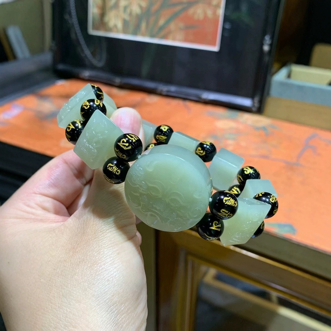 謹瑜堂の美しい新疆と田玉沙棗青ブレスレット