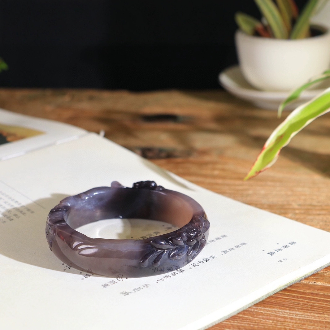謹瑜堂荷韻逸品和田玉煙紫ブレスレット高華雅逸線流暢で上品で高貴です。