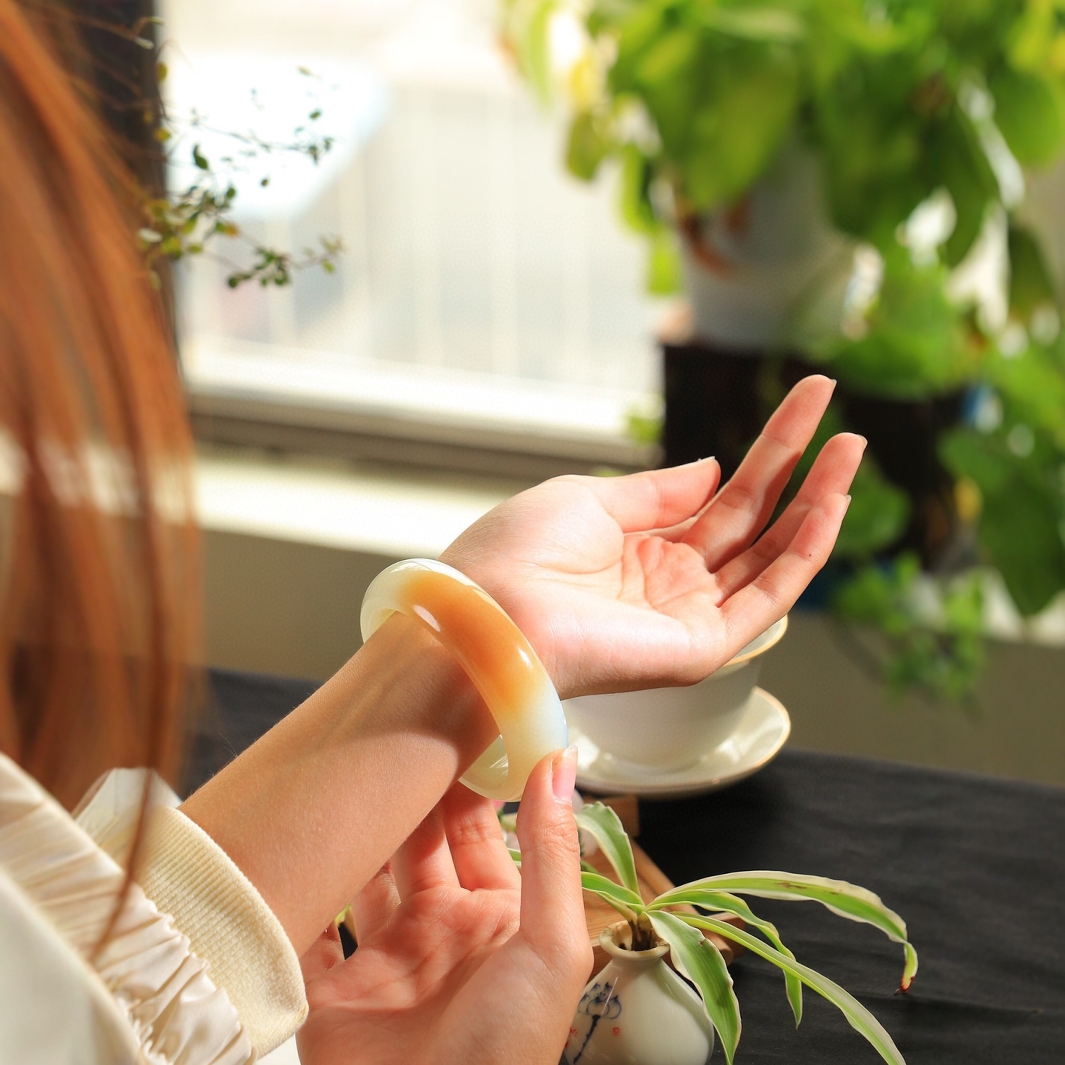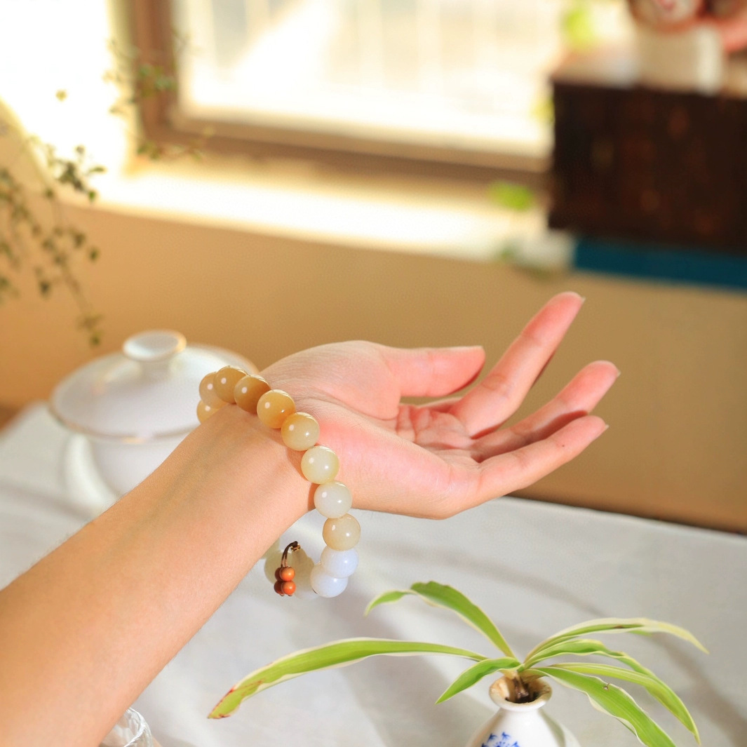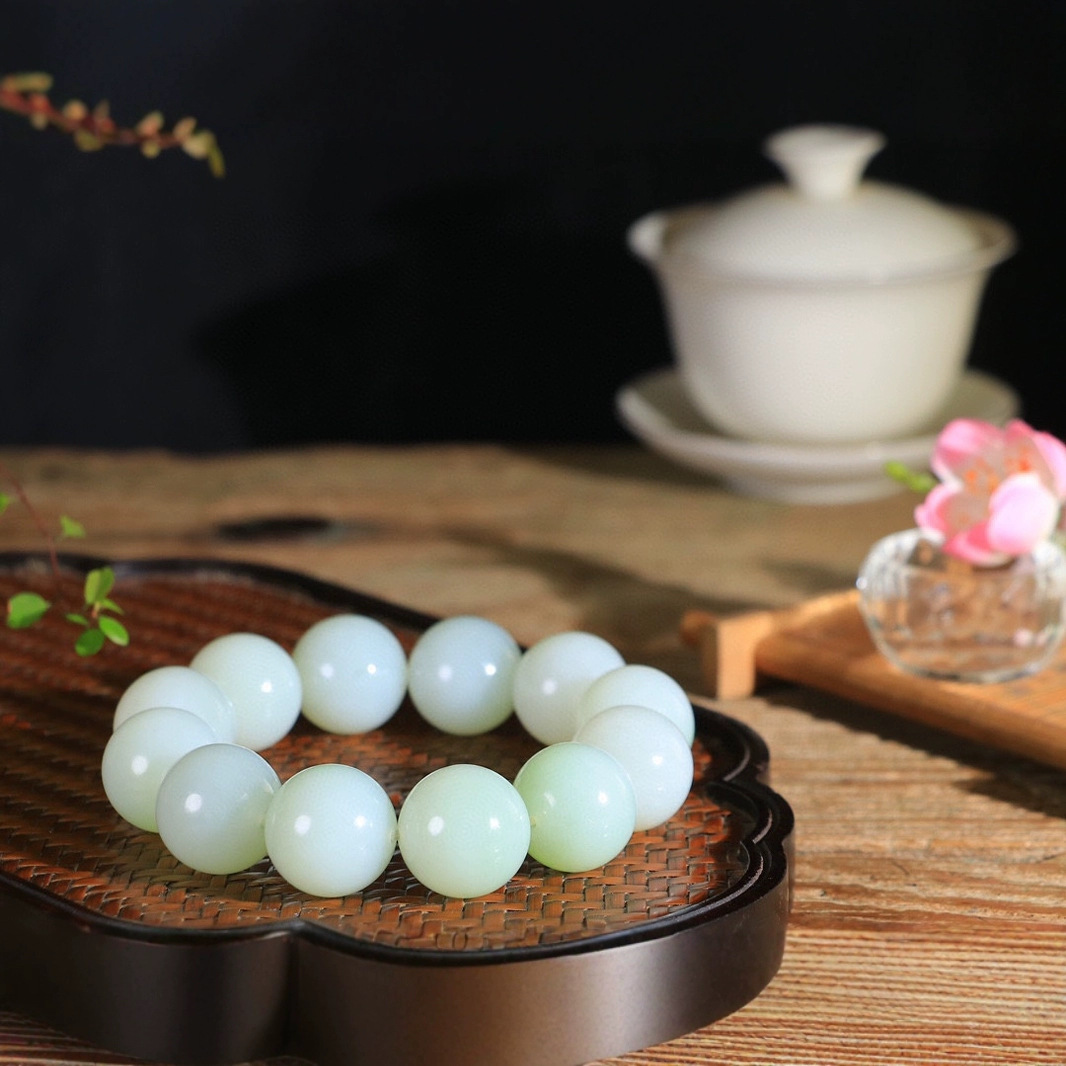謹瑜堂逸品と田玉白玉ブレスレットの光沢と柔らかさを意味します。