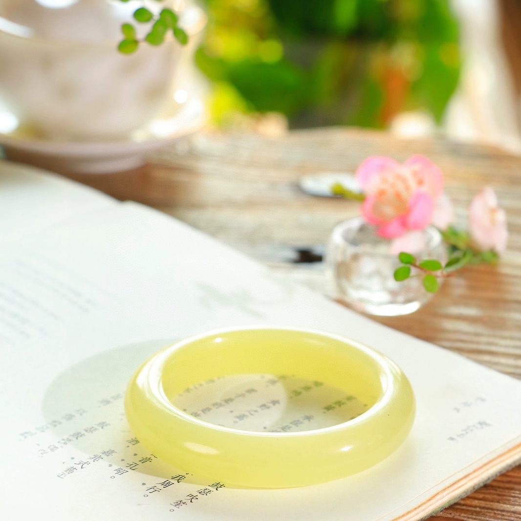 謹瑜堂収蔵級の至高品新疆と田玉の黄色の口のブレスレットの玉質の繊細な手触りは暖かくてつやつやしています。