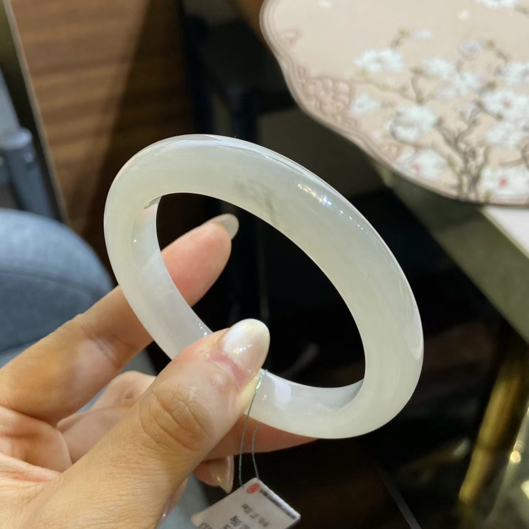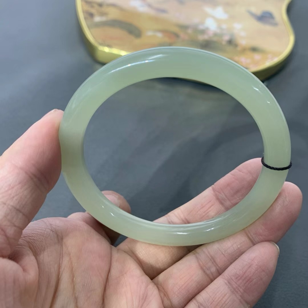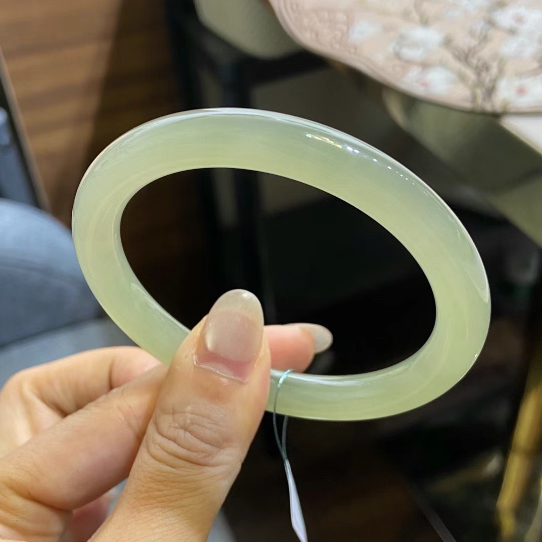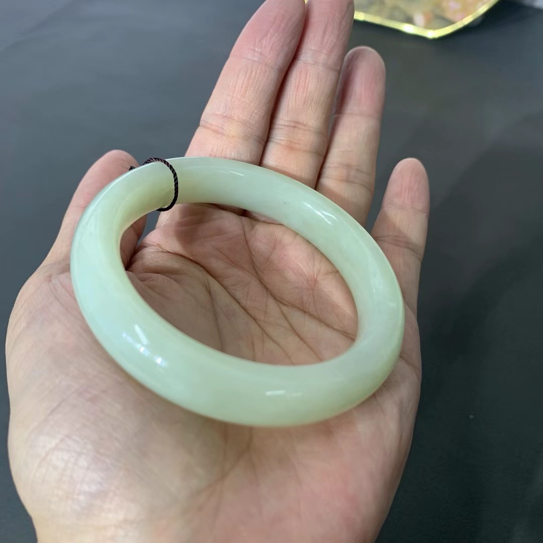 美しい和田玉ブレスレット高氷底氷感玉質繊細油潤無雑裂微綿綿輪口57*11mm