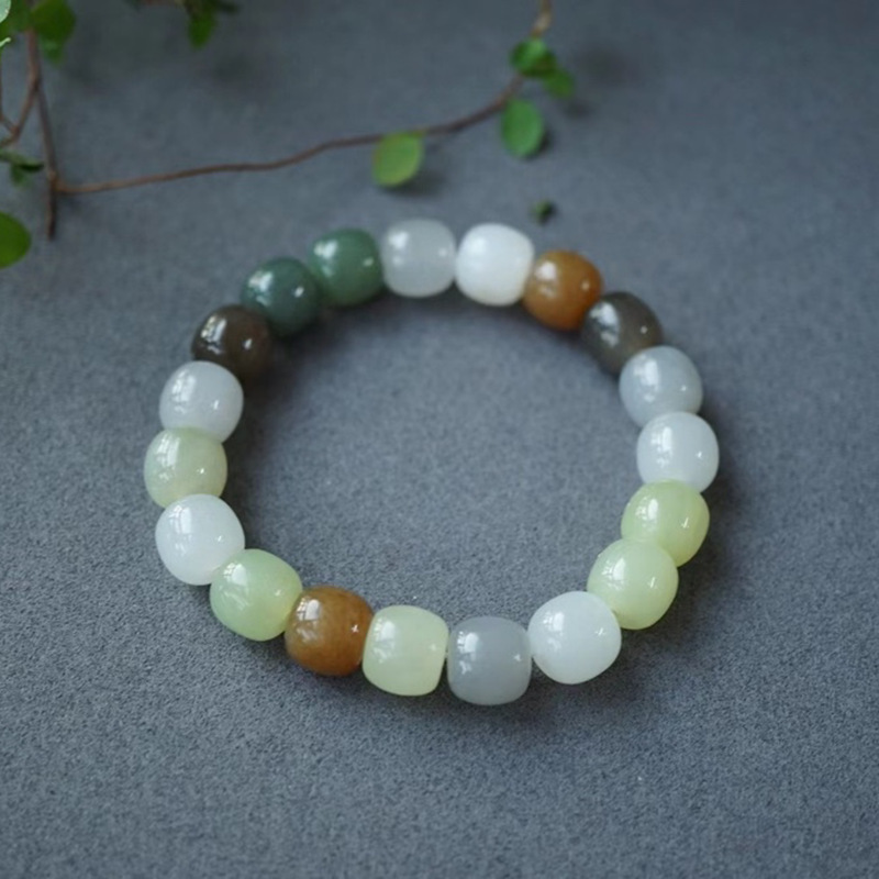 新疆天然和田玉多宝手串虹糖果色晴水10 × 9mm旧型和田玉ブレスレット