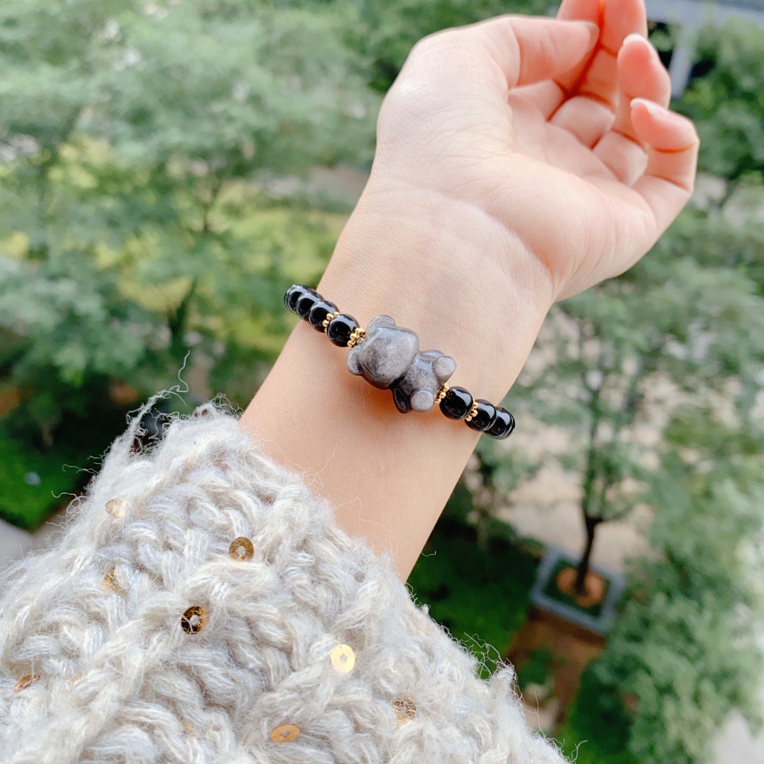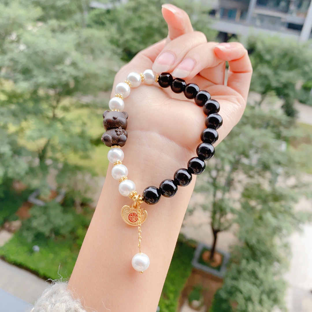 オリジナルデザインの施家真珠黒曜石沈香熊フリンジブレスレット8mデザイン感手串