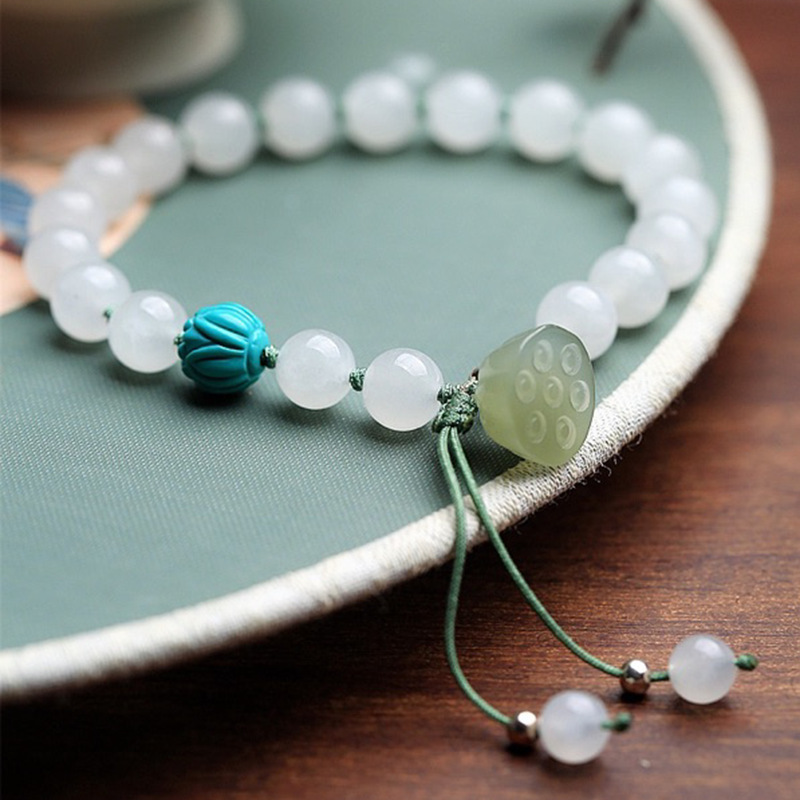 新中国式のさわやかな緑の東陵のブレスレットの女性の大衆の設計の高級感の幸運な草は金糸の玉のブランドの手の串を招きます。