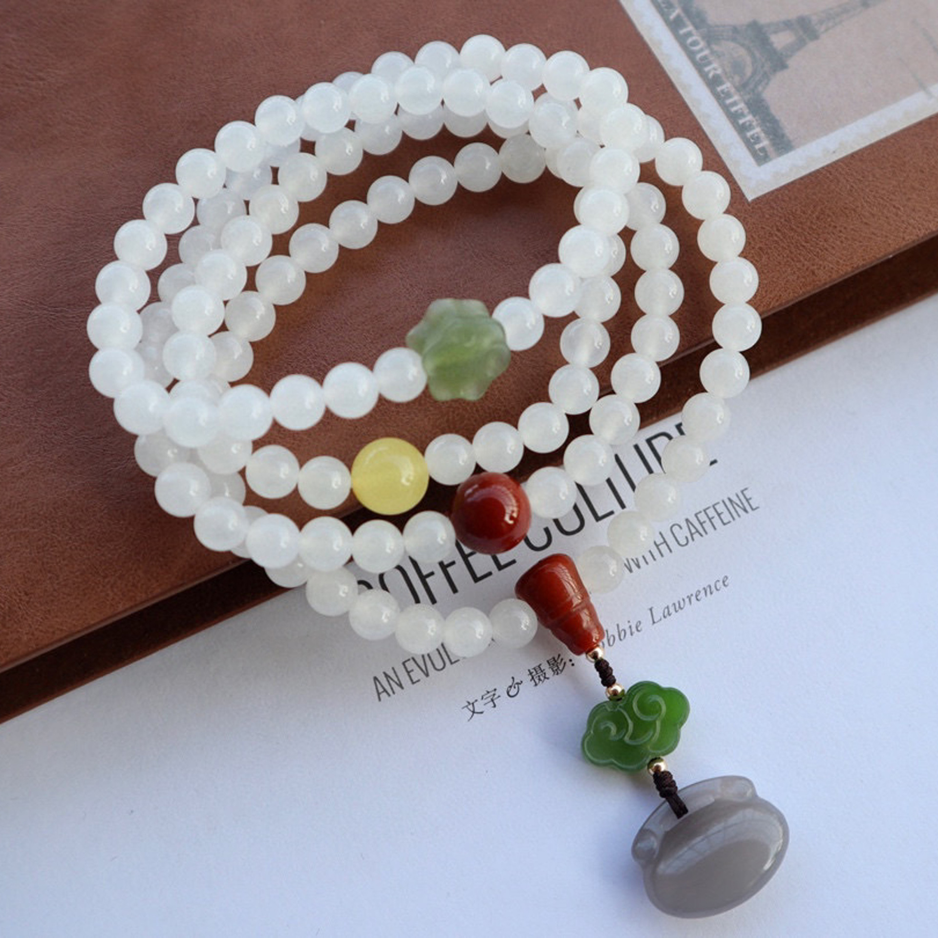 オリジナル天然和田玉多輪ブレスレット新疆糖料繊細な水潤と南紅小ウサギ碧玉手串