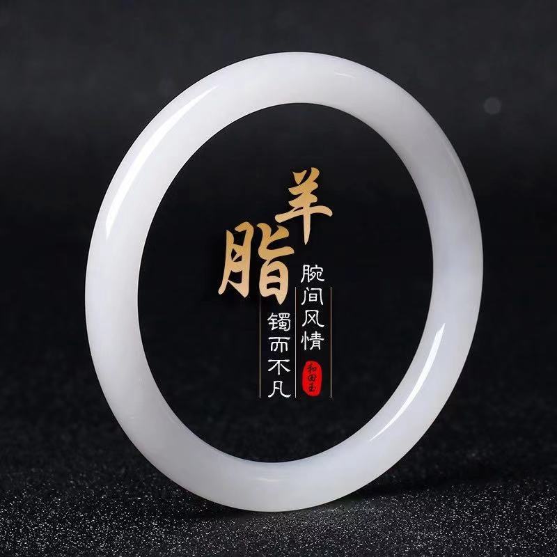 天然新疆和田玉ブレスレット玉器羊脂玉少女円条玉ブレスレット