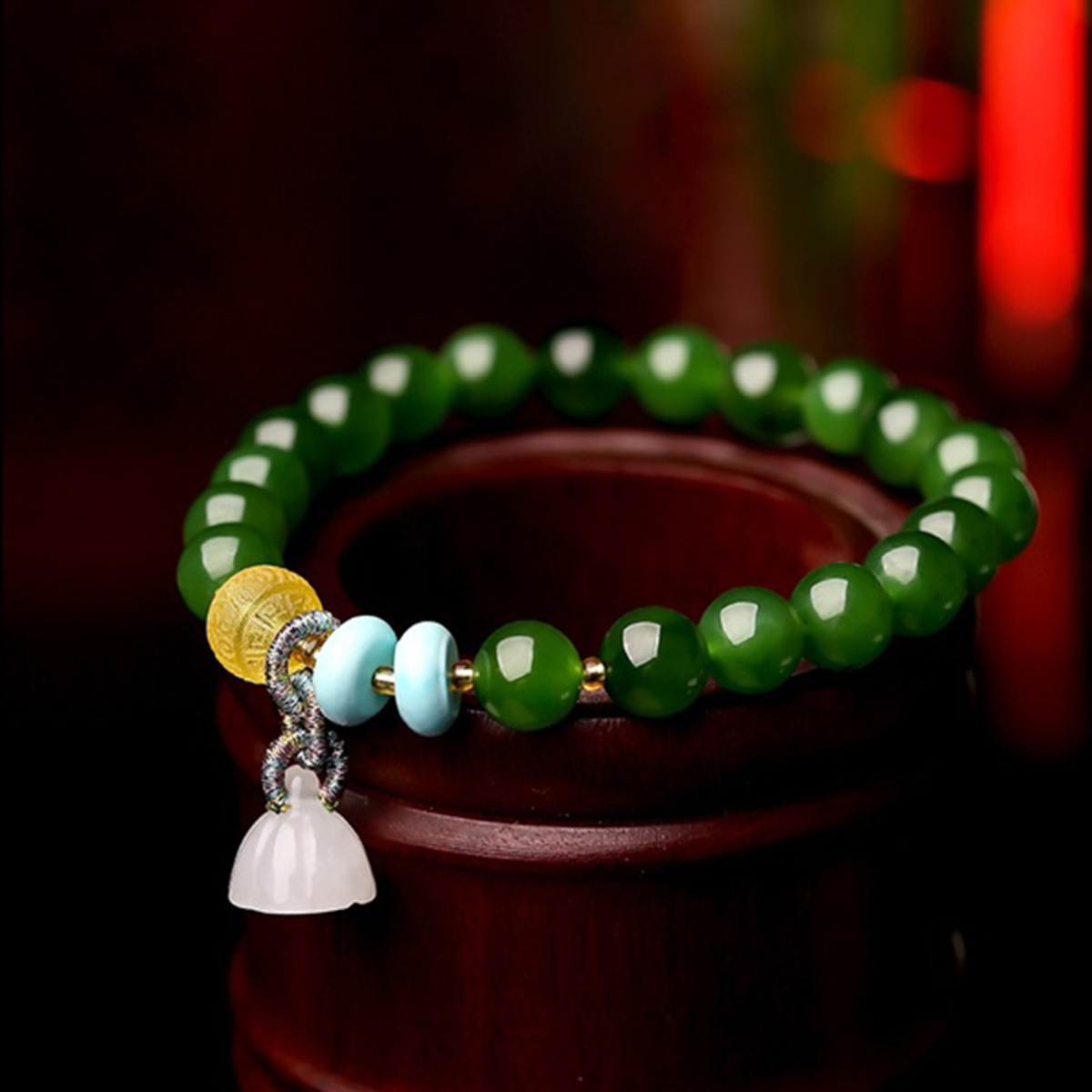 玉器崑崙碧玉ブレスレット新疆と田玉碧玉ブレスレットホウレンソウ緑玉ブレスレット帯