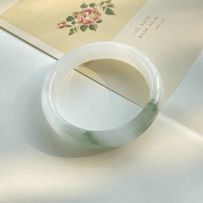 天然翡翠色A品玉ブレスレット氷モチモチ種濃淡緑漂花真玉ブレスレット旺夫送母帯卸売り