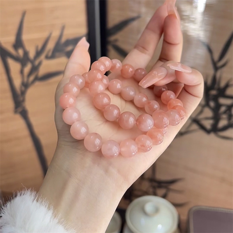 メーカー卸売り天然金糸玉桃花醸造円珠手串ピンク少女金桜氷透粉玉ブレスレット