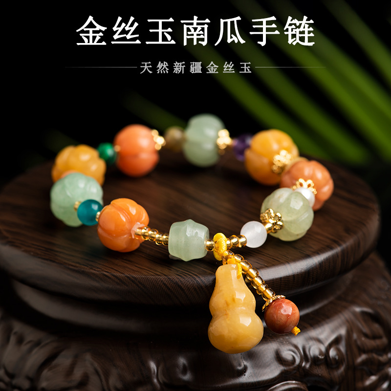 天然新疆金糸玉多彩なかぼちゃの手串ゴビ玉黄玉オリジナル個性古風女性の玉のブレスレット