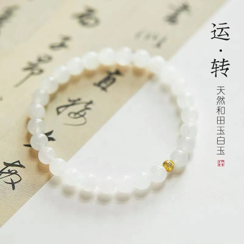 天然和田玉ブレスレット女夏ins小衆デザイン丸珠手飾り2023新型軽贅沢シンプル感手串