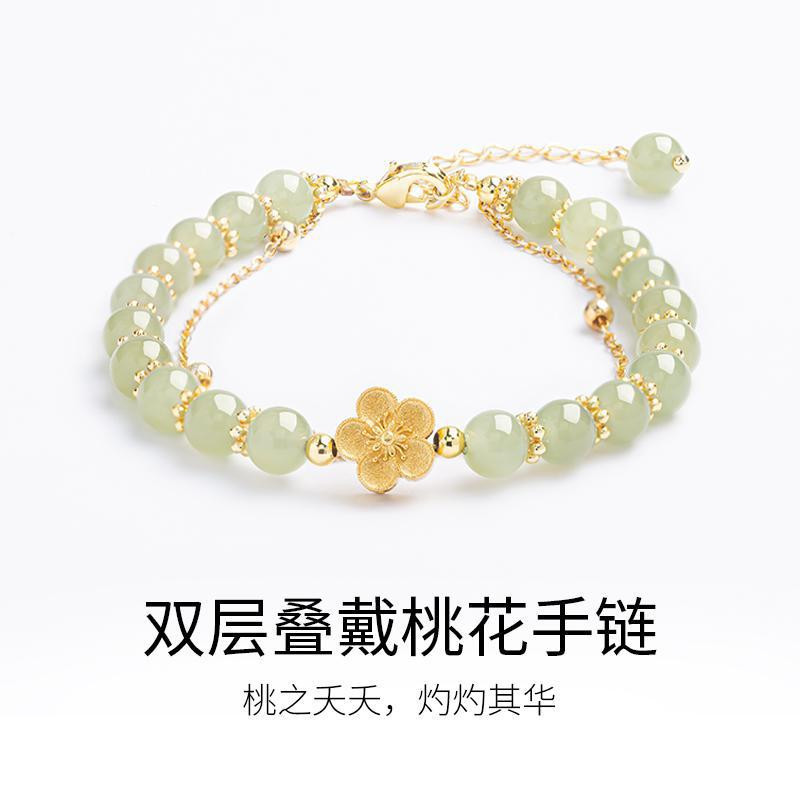 天然和田玉ブレスレット女転運珠晴水和田玉手串白玉碧玉小桃花グラデーション手串