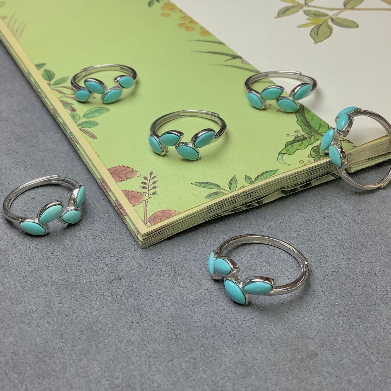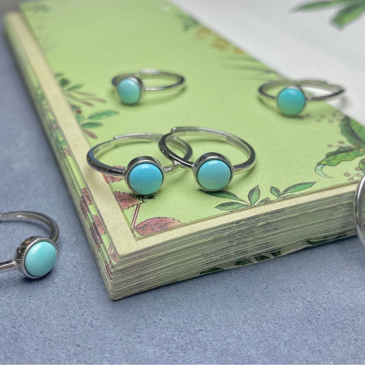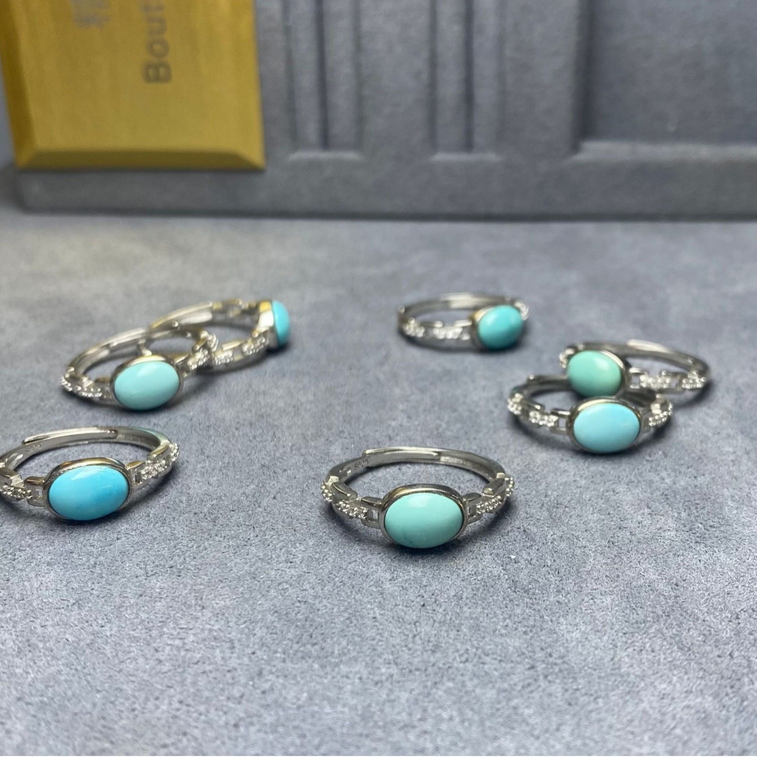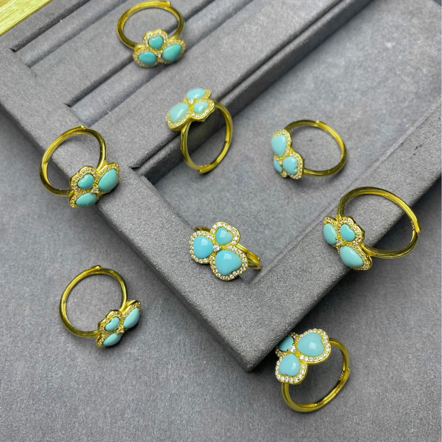 S925シルバー純銀に24K本金メッキを施し、天然原石ターコイズを象嵌した、清涼感のある高級感のある女性用リング(証明書付き)