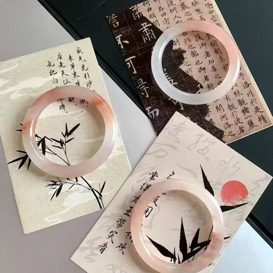 天然金翡翠桃の花入り翡翠ブレスレット、女の子スタイルの気質翡翠ブレスレット、ニッチビューティー、多用途の美白ブレスレット