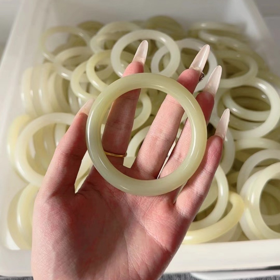 新疆ホータン翡翠、青白翡翠、交換用ブレスレット、カルセドニー翡翠ブレスレット、ジングルブレスレット、晴水丸棒、氷透明アフガン翡翠
