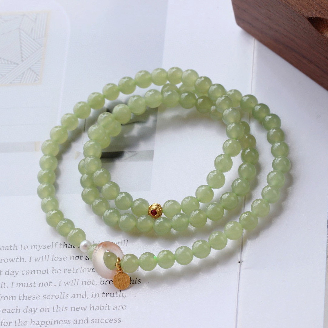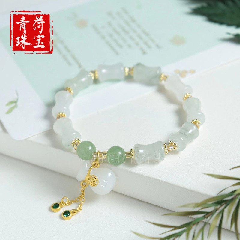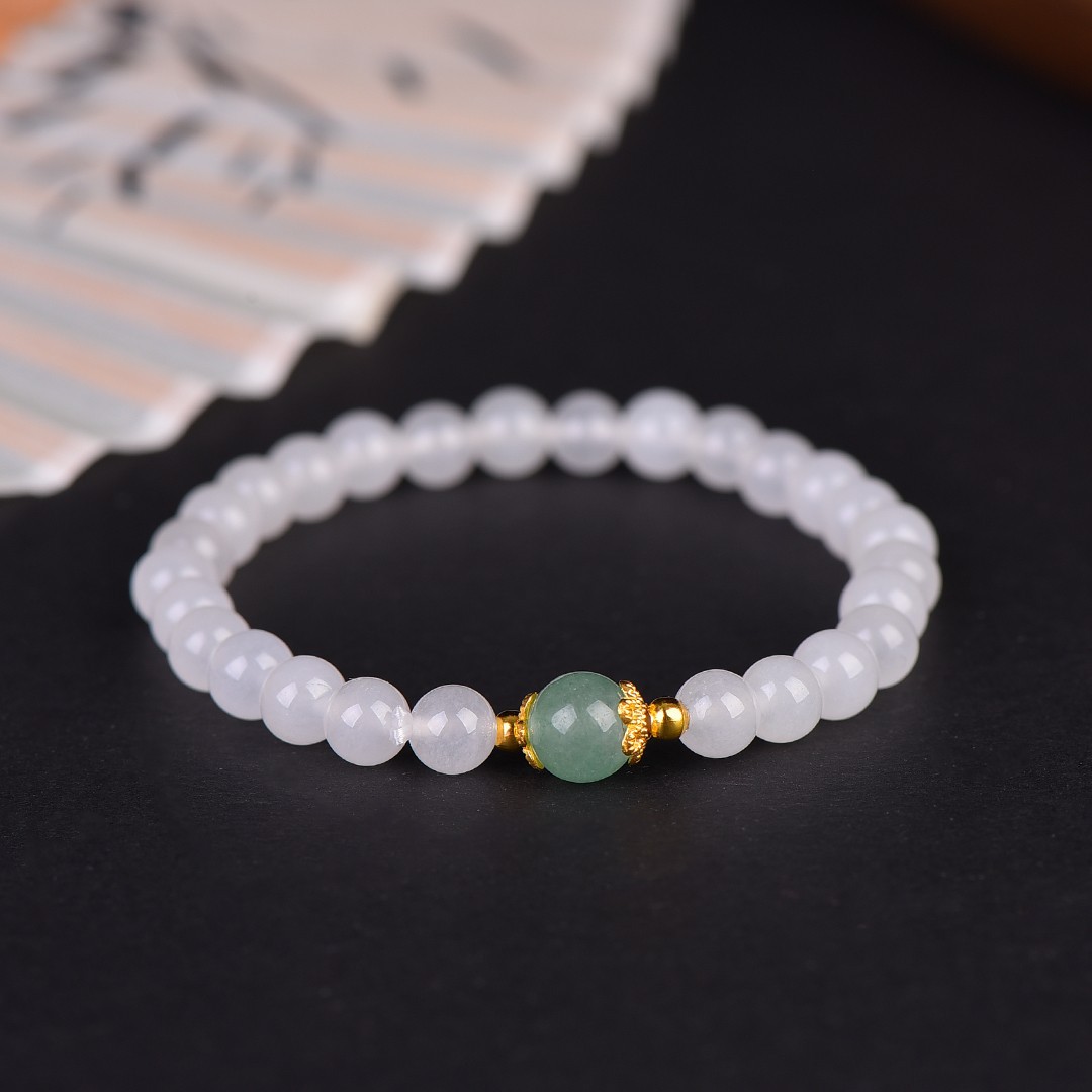 天然アフガニスタン翡翠白月光ガールスタイル気質白丸玉ブレスレットニッチ古代スタイルの美しさ多用途