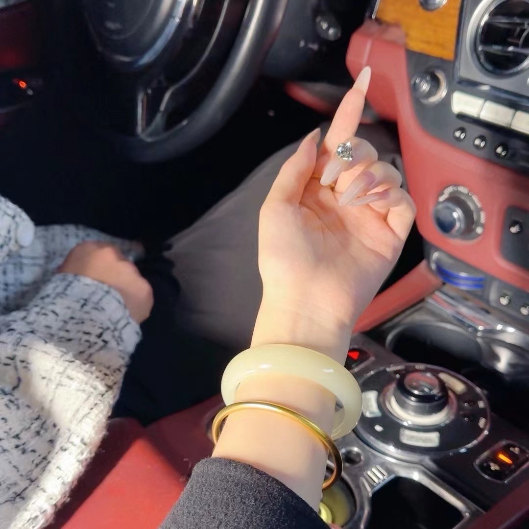 女の子用6mm天然金翡翠ブレスレット、シンプルでニッチな新疆羊脂プラチナ翡翠ブレスレット、工場価格卸売