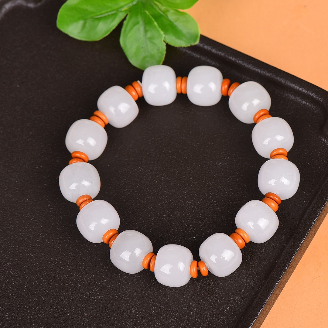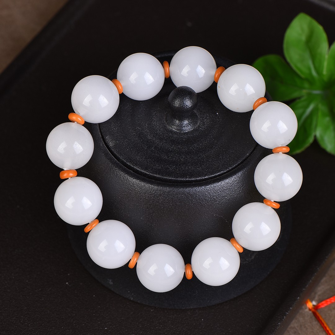 卸売新疆ホータン翡翠羊脂肪白金シルク翡翠古いスタイルのビーズ男性と女性の翡翠ブレスレットドロップシッピング