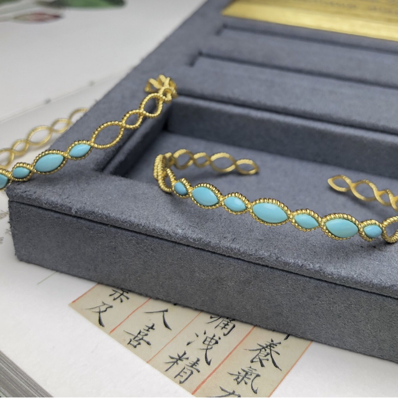 S925 シルバースターリングシルバーメッキ 24 k リアルゴールド象嵌天然原石ターコイズヨーロッパとアメリカのハイエンド気質ブレスレット女性の証明書