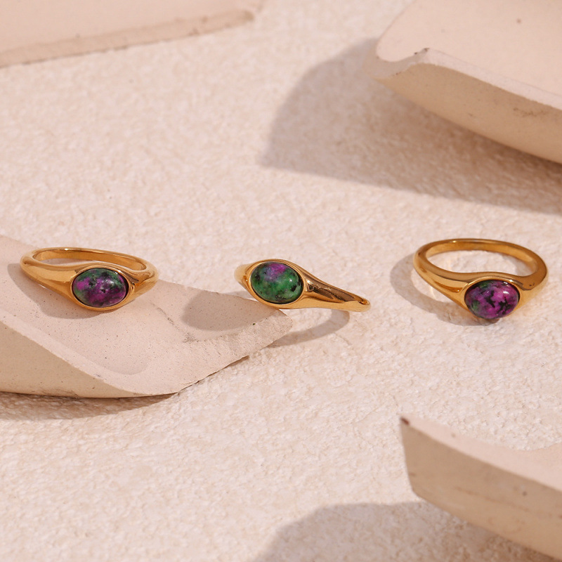 ヨーロッパとアメリカのファッションパーソナライズされたニッチライト高級リングジュエリーステンレス鋼メッキ 18K ゴールドオーバル天然石リング