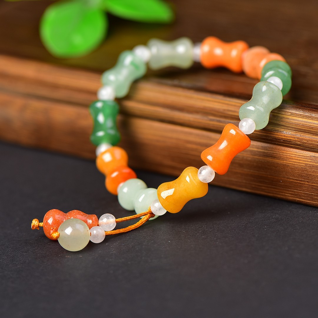 女性用天然アベンチュリンブレスレット、本物のアベンチュリン竹ブレスレット、ひょうたんタッセル、金玉三色ブレスレット