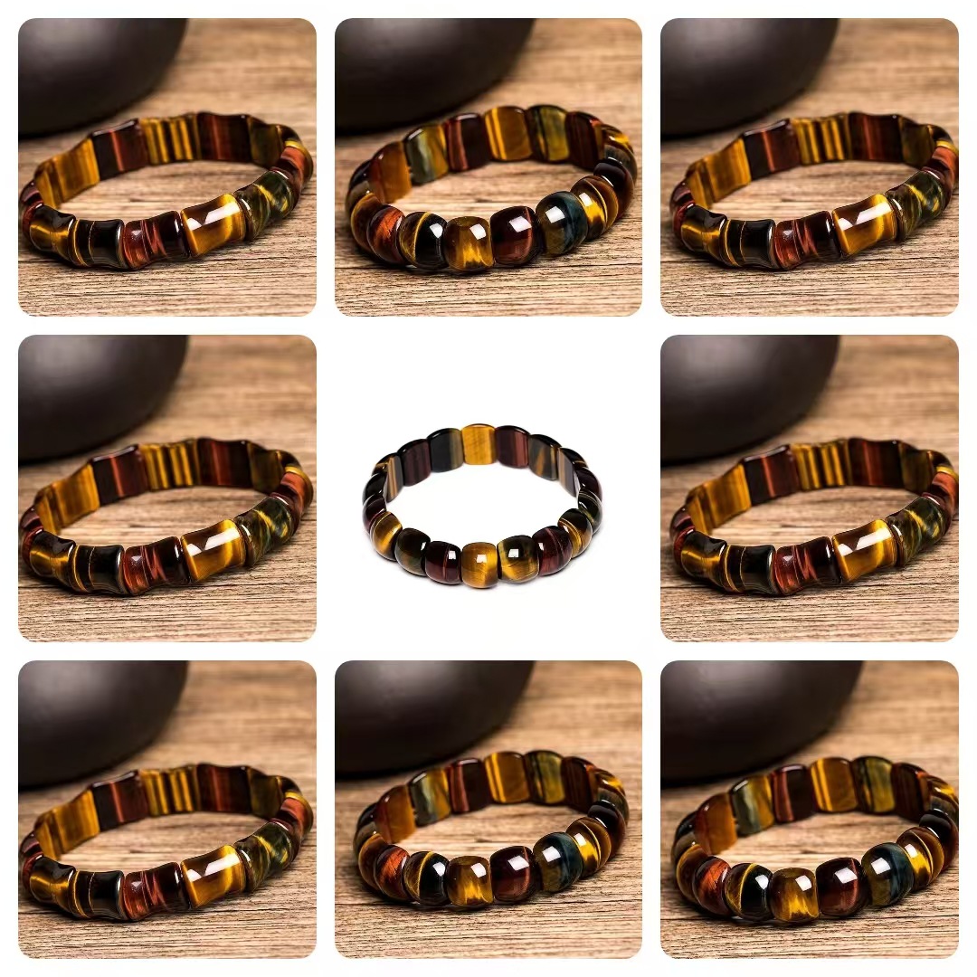 水晶カラー虎晴石彩虎黄青赤虎眼石竹節手列手牌ブレスレットメーカー彩虎眼手牌