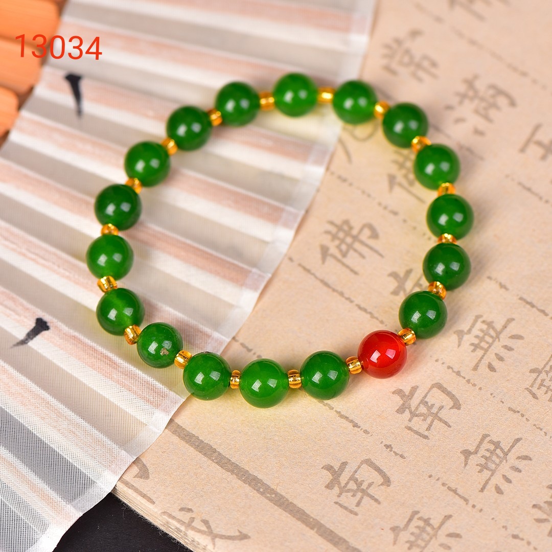 天然緑翡翠ブレスレット赤瑪瑙マレー翡翠ブレスレット工場価格卸売女の子緑珪岩翡翠ブレスレット卸売
