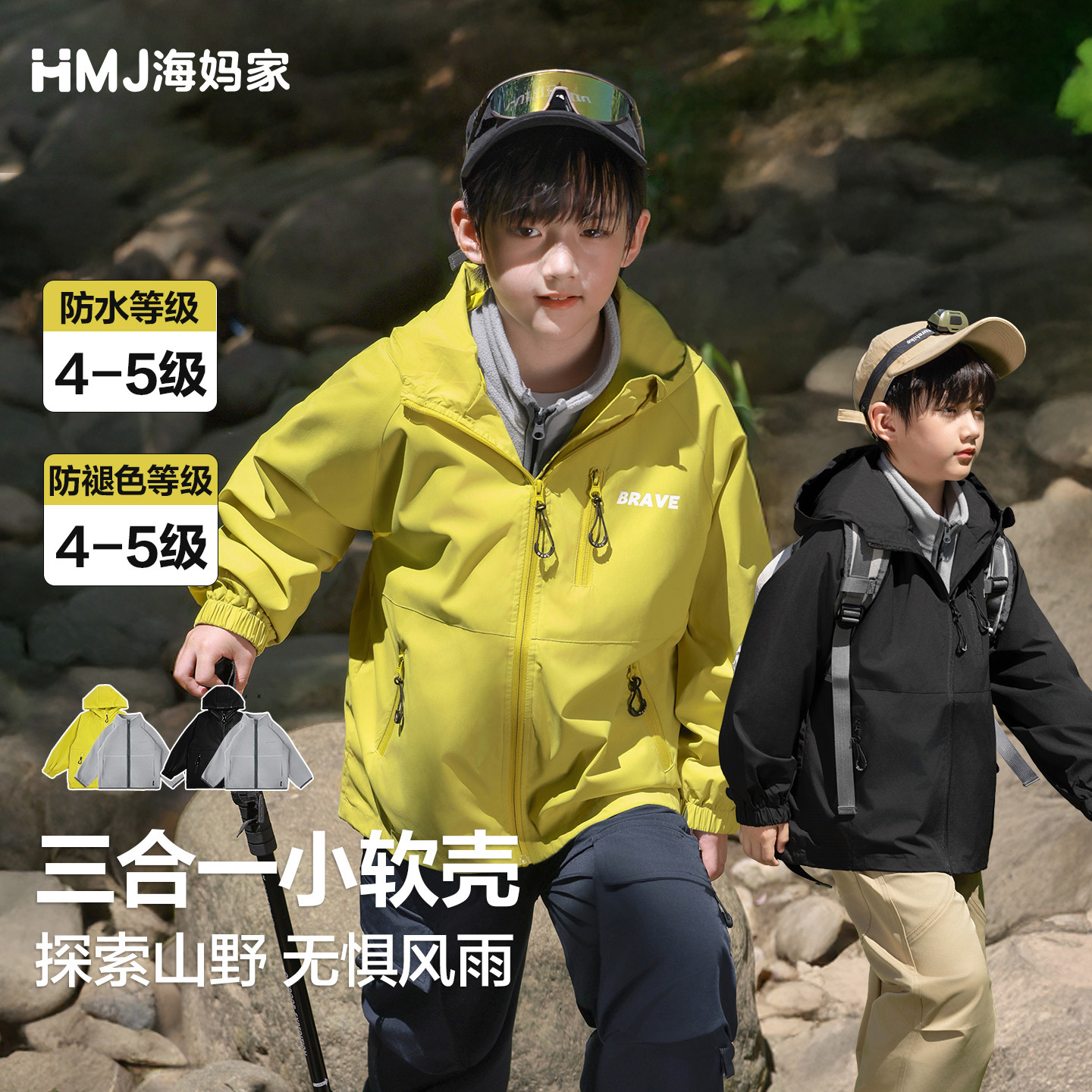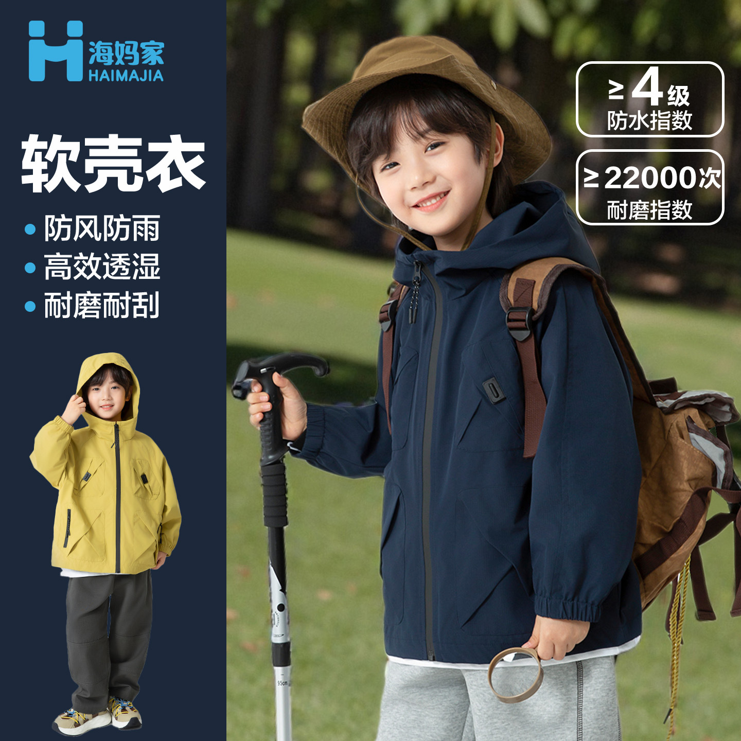 Haima Home 2025 秋の新男の子フード付きジャケットソフトシェルジャケット子供の屋外秋服キャンプ