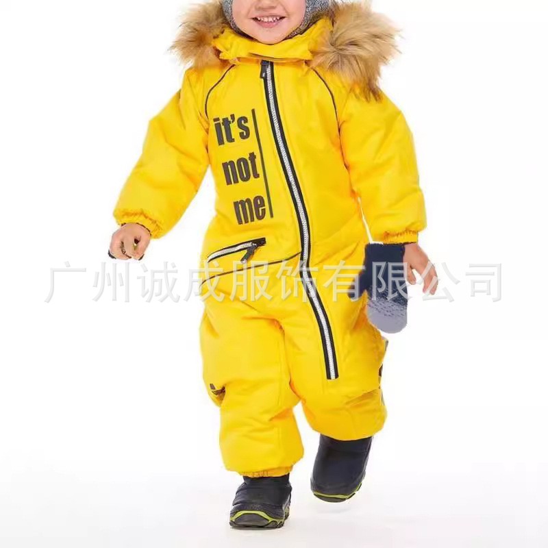 スポット工場直販クロスボーダー子供用アウトドア防水プラスベルベット厚く暖かいスキースーツ発光ワンピーススーツ