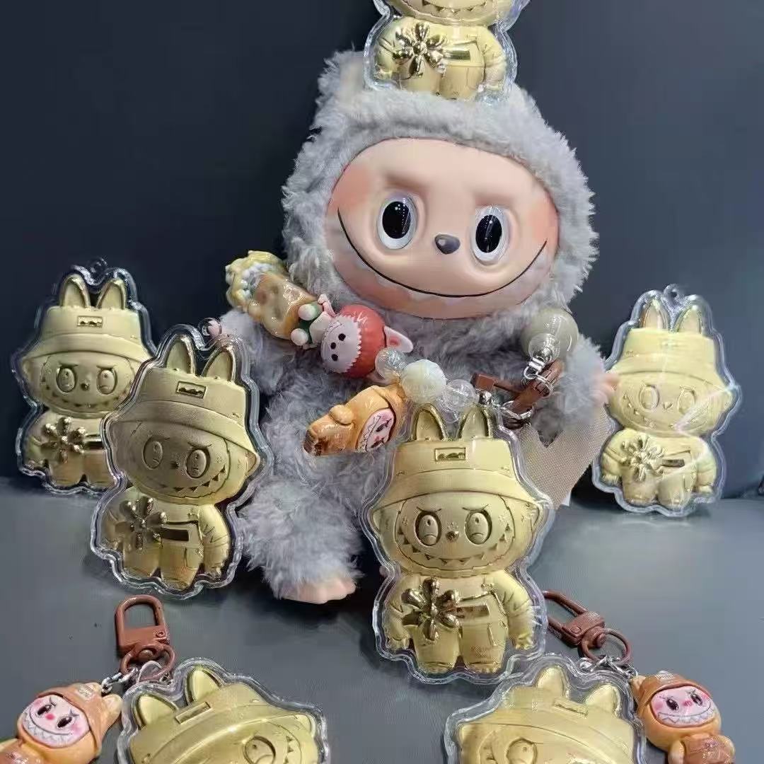 ゴールドラブブ十二支携帯電話ステッカー純金 999Labubu ゴールドシートペンダント漫画装飾アクセサリー