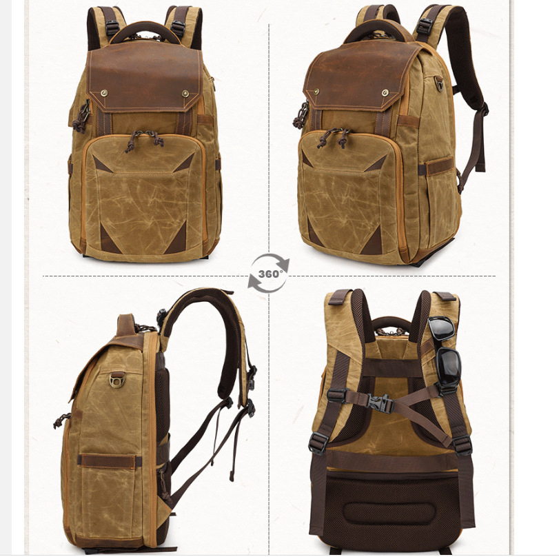 カメラバッグ防水レトロバティックキャンバスレザーバックパック