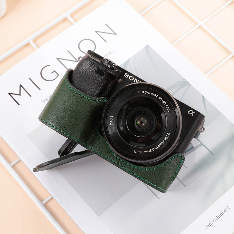 ソニーzve10lカメラバッグa6300 a6100 a6400 a6000マイクロ真皮ベース皮カバー半セット