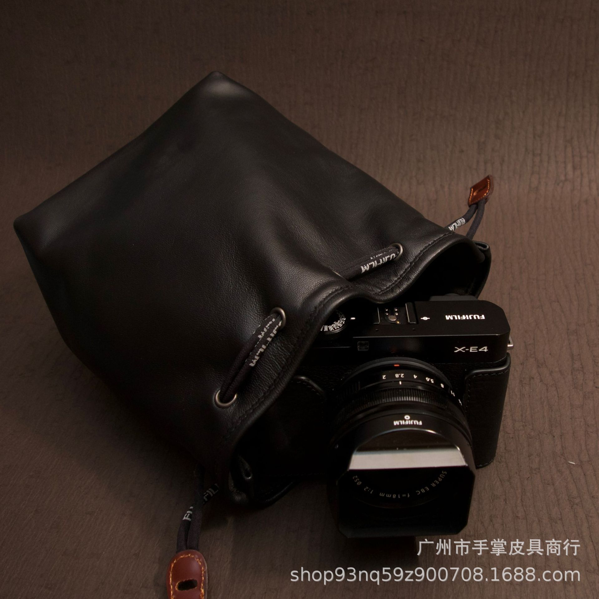 富士fuji羊皮の束口はカメラの収納バッグを持っています。