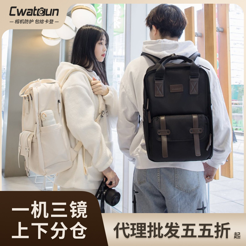 Cwatcun香港日系軽量防水一眼レフカード登キャンバスカメラバッグマイクロシングル撮影シングルショルダーバッグ