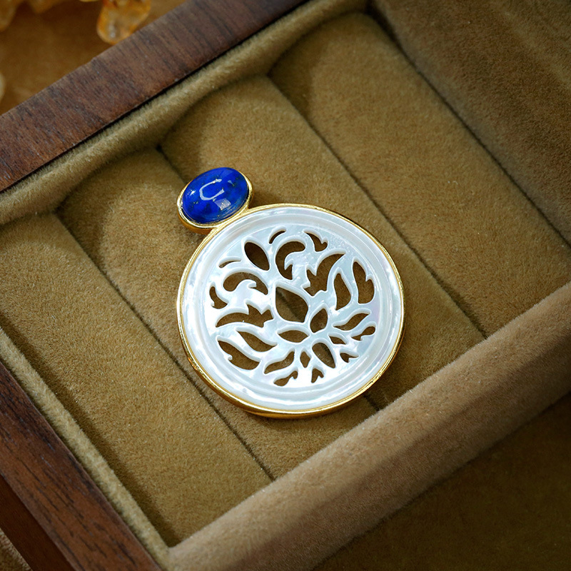 S925銀は白貝青金石ペンダントをはめ込んでいます。