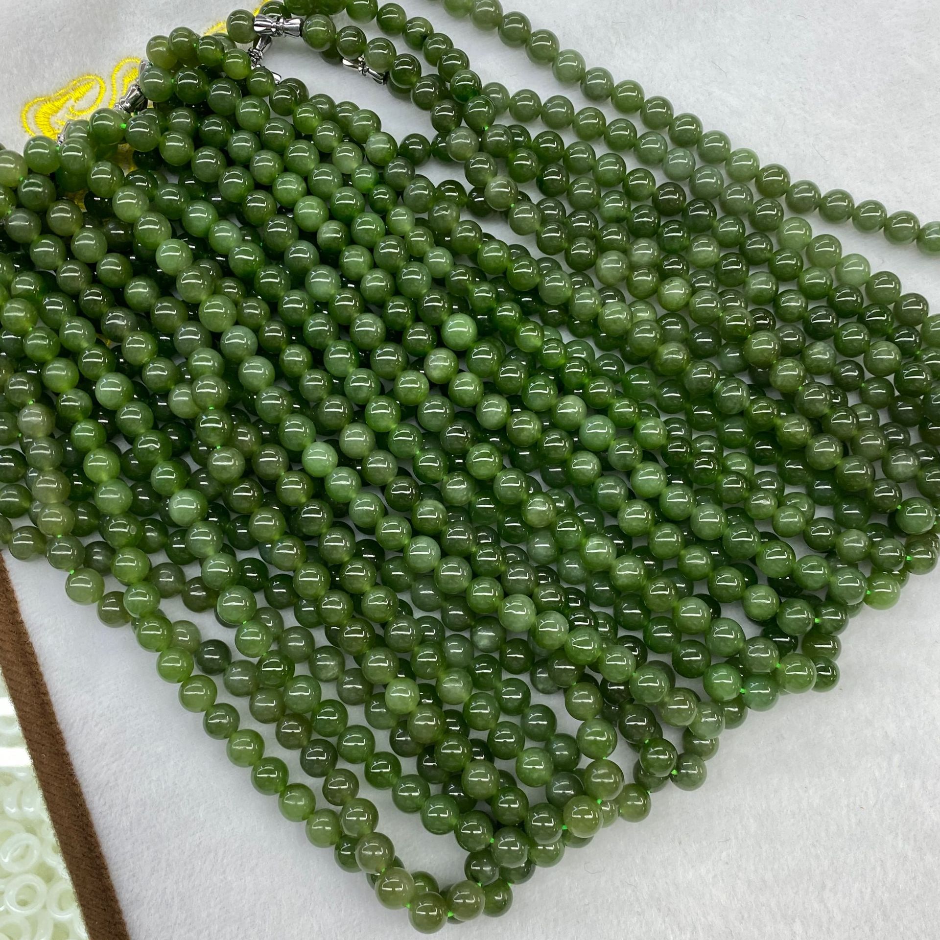 可塘ジュエリー天然和田碧玉8mmママネックレスほうれん草緑無黒点DIY手作り碧玉配