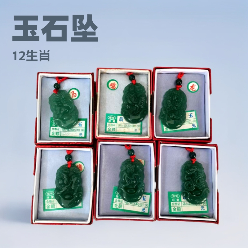 翡翠ペンダントB級漢白玉油青玉十二支ネックレス白玉男女十二支玉飾り卸売