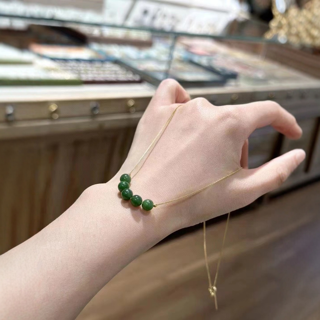 謹瑜堂碧玉スマイルチェーン証明書➕ギフトボックス➕チェーン6mmビーズほうれん草緑無黒点新疆正品