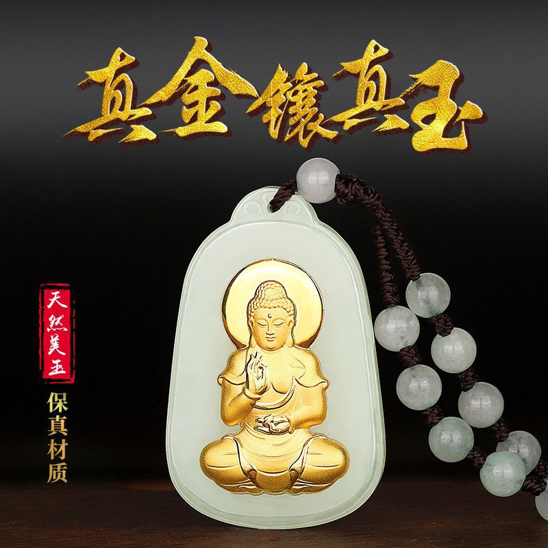 金の玉のペンダントの黄金と田玉の十二生肖の属相の男性の足金の本命年の観音の平安玉のネックレス