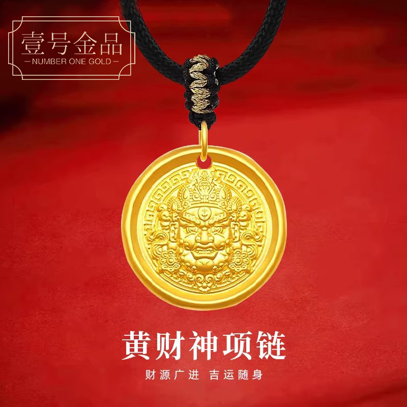 Shuibeijin 黄金の富の神ペンダント 純金 999 富と祝福の黄色の富の神ハードゴールドネックレス 彼氏への誕生日プレゼント