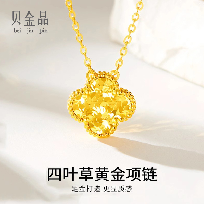 純金 999 ペンダントゴールド四つ葉のクローバーネックレスペンダント女性のための 3D ハードゴールドラブセットチェーンライブブロードキャストホットアイテム卸売
