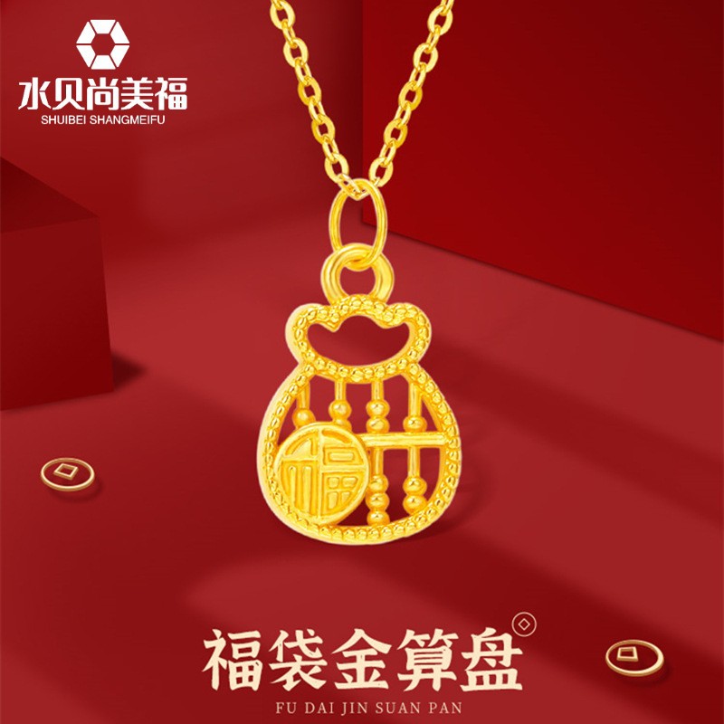 水貝黄金福袋そろばんペンダント999足金福字銭袋ネックレス5g無シアン鎖骨鎖誕生日プレゼント
