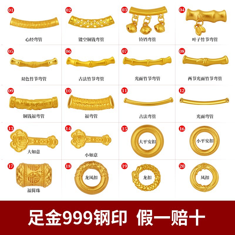 Shuibeijin ゴールド卸売純金 999 ルースビーズゴールドビーズ 3D ハードゴールド光沢のある古代手作り DIY 転送ビーズアクセサリー