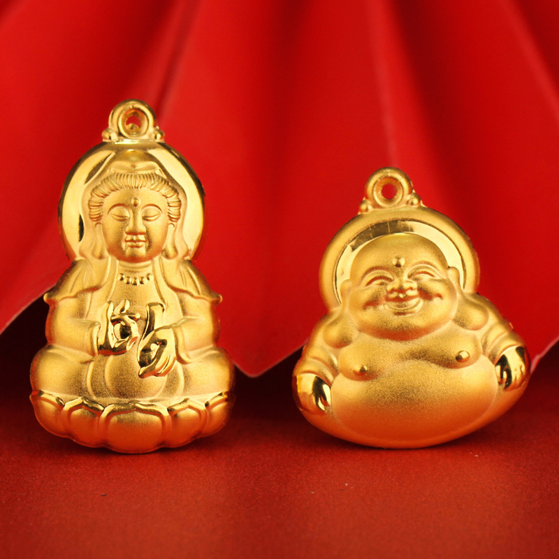 足金999黄金観音弥勒仏ペンダント両面純金3d立体ペンダント生放送は商品の供給源プレゼントを販売します。