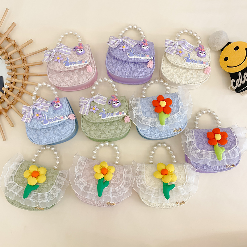 卸売り小香風プリンセスバッグ子供真珠ハンドバッグ赤ちゃん漫画装飾チェーン斜めショルダーバッグ小銭入れ萌え