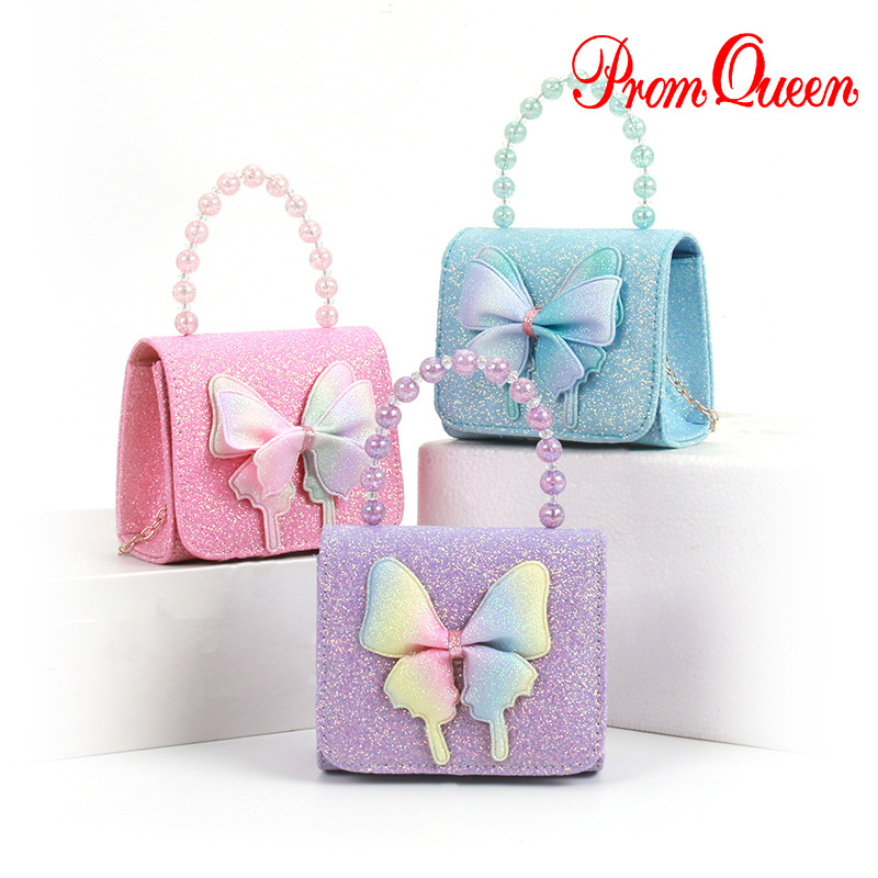 2024クロスボーダー新型子供小銭入れ蝶結びプリンセスバッグ真珠ハンドバッグショルダーバッグ女の子バッグ
